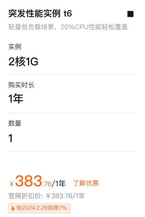 相关服务: 天河ECS突发性能t6费用